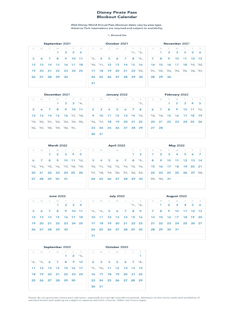 Disney Pirate Blackout Dates. Check for reservations/blocked and/or to be determined. Pass is valid for use most days, subject to blockout dates including peak and holiday periods—view blockout dates.